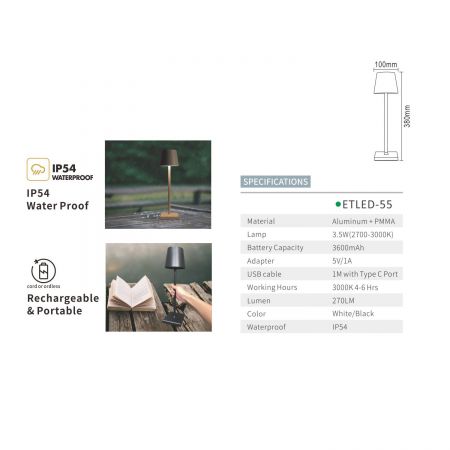 - Waterproof, suitable for indoor and outdoor use, a great outdoor portable table lamp and indoor battery operated light.