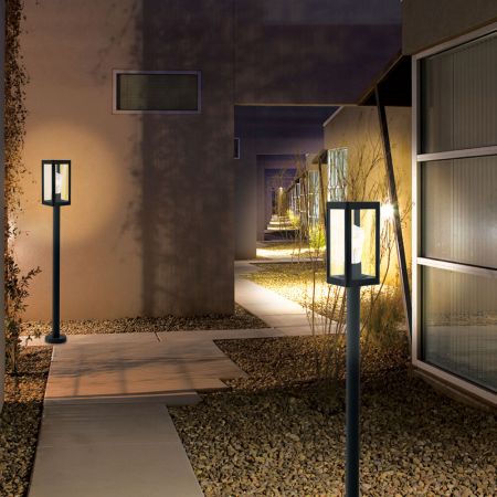 モダンな街灯/屋外ランタンシリーズは、実用的な照明であるだけでなく、魅力的な装飾としてもお使いいただけます。[Cane]屋外照明器具には、屋外ランタン、2種類のウォールスコーン、そしてボラードが含まれます。特徴はガラスパネルです。透明なガラスパネルが電球を美しく照らし、美しい光と素晴らしい雰囲気を演出します。温かみのある心地よい白色光は、庭園、裏庭、あらゆる屋外スペースをより魅力的に演出します。
