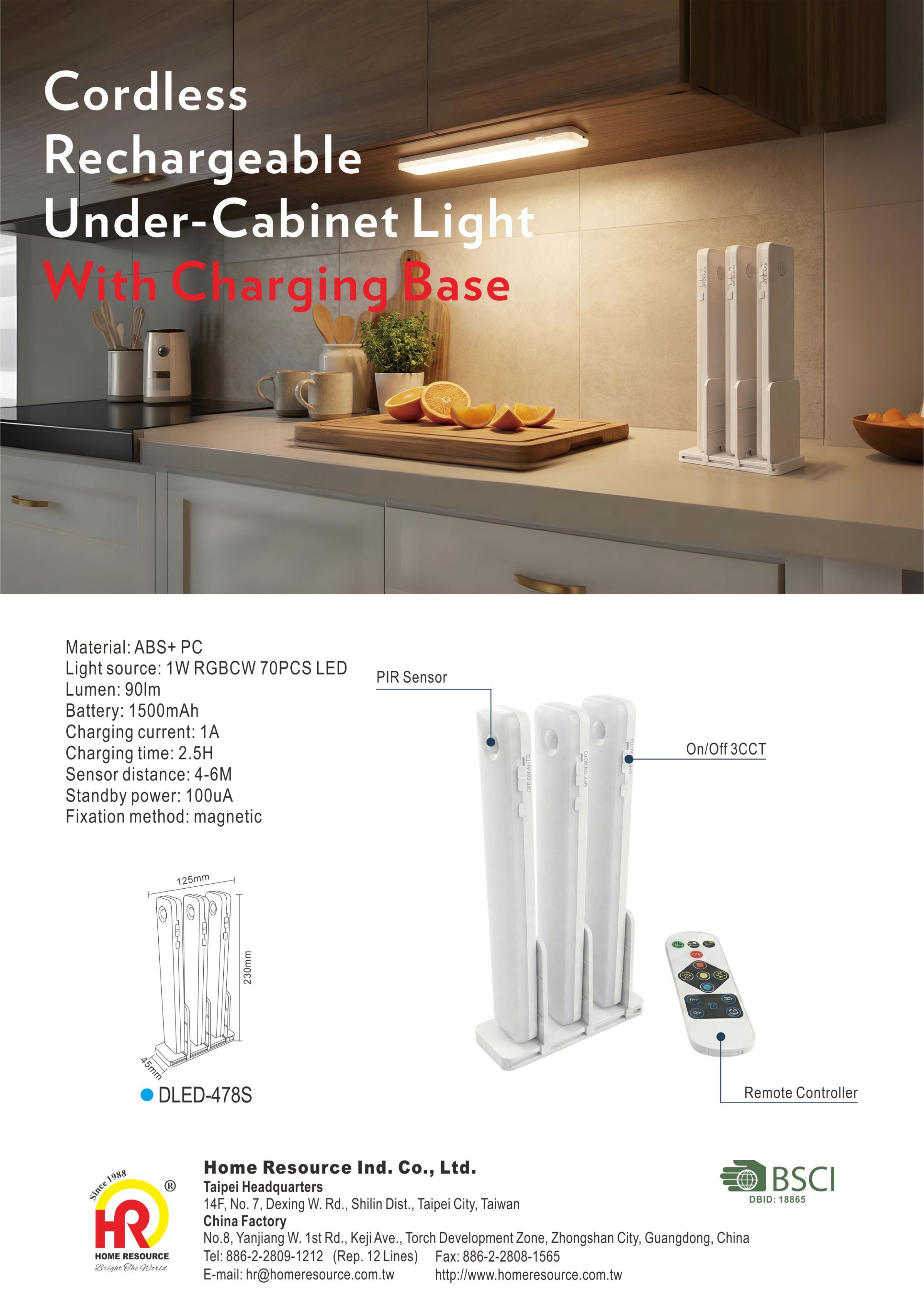 Designed for modern residential and commercial spaces, this cordless under-cabinet light perfectly combines convenient storage with high-quality illumination. Featuring an innovative vertical charging base, it allows three light bars to charge simultaneously while keeping your countertops neat and organized. It supports RGBCW color and warm/cool white adjustments, and is equipped with a highly sensitive PIR motion sensor and a magnetic mounting design.