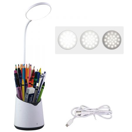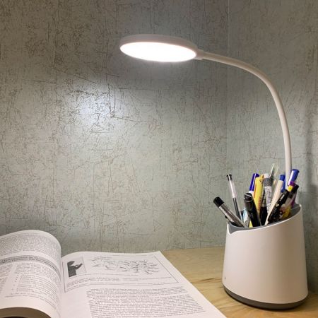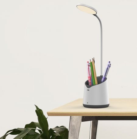 Con un diseño de espacio de almacenamiento único, la lámpara de escritorio LED tiene una gran capacidad para muchos tipos de papelería o artículos esenciales como marcador, pegamento, termómetro para la frente, desinfectante de manos, alicates, destornillador, etc.