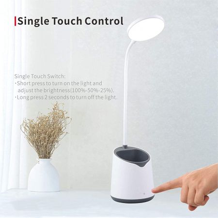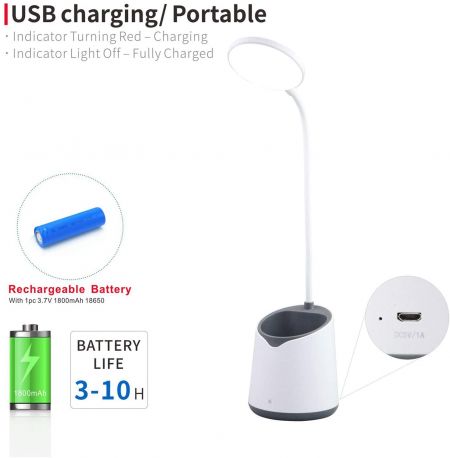 Home ResourceLa lámpara de escritorio LED cuenta con una batería de litio recargable de 1800 mAh que ofrece de 3 a 10 horas de autonomía. Su exclusivo diseño de portalápices permite usarla como soporte para bolígrafos o artículos de papelería. También funciona de maravilla como lámpara de escritorio. Su diseño sencillo y moderno la convierte en la mejor opción. Es pequeña, ligera y portátil, ideal para llevarla a todas partes. Es ideal para leer en dormitorios, oficinas y dormitorios.