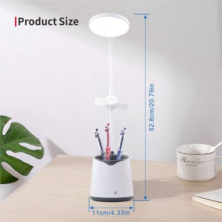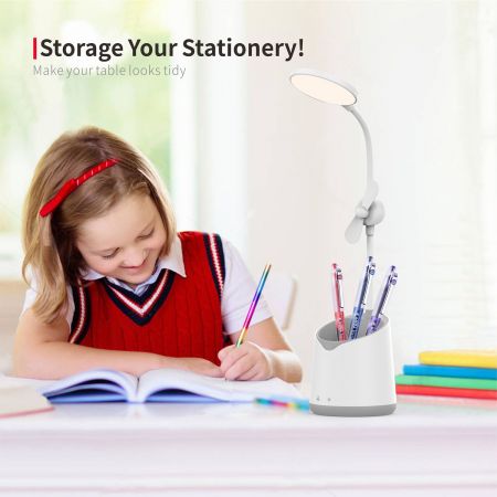 Con un diseño único de portalápices, puede usarse como portaplumas o portapapeles. También funciona de maravilla como lámpara de escritorio y miniventilador. Su diseño simple y moderno la convierte en la mejor opción de lámpara de escritorio minimalista. Esta bonita lámpara de escritorio es perfecta para escritorios de oficina, bancos de trabajo electrónicos, mesas de lectura y escritura.