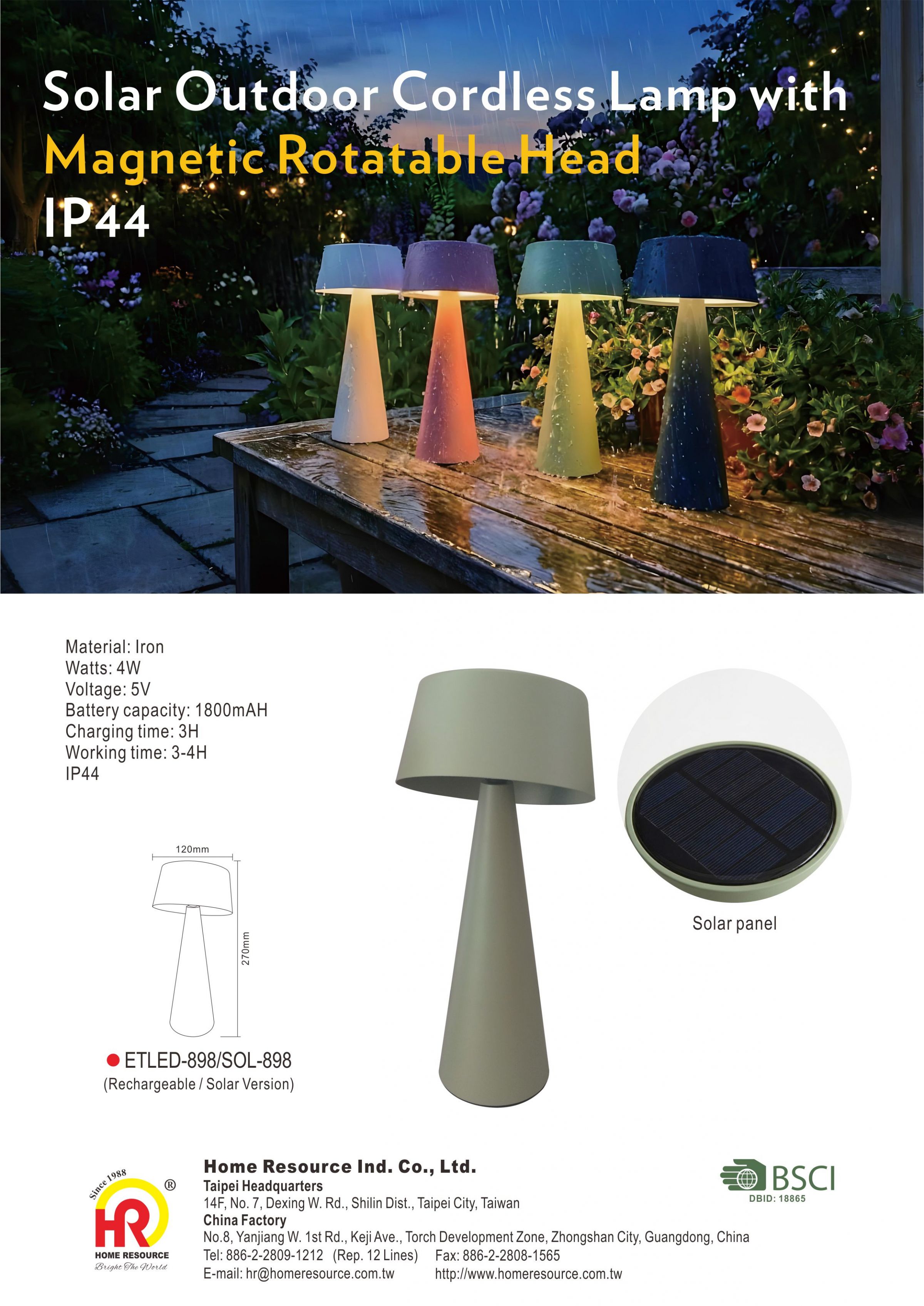 Disponible en versions rechargeable et solaire pour répondre à différents besoins d'utilisation. Le modèle rechargeable est doté d'une batterie intégrée de 1800 mAh , tandis que la version solaire intègre un panneau solaire discret monté sur le dessus pour une recharge extérieure durable.