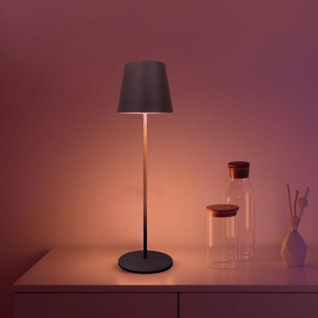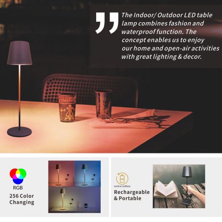 Настольная лампа с регулируемой яркостью и RGB-подсветкой станет отличным акцентом в любой комнате или на открытом воздухе. Светильник отличается идеальным сочетанием элегантной формы и современного дизайна. Он станет стильным акцентом на террасе, в саду, кафе на открытом воздухе, у бассейна, ресторане с открытой террасой или гостиничном номере.